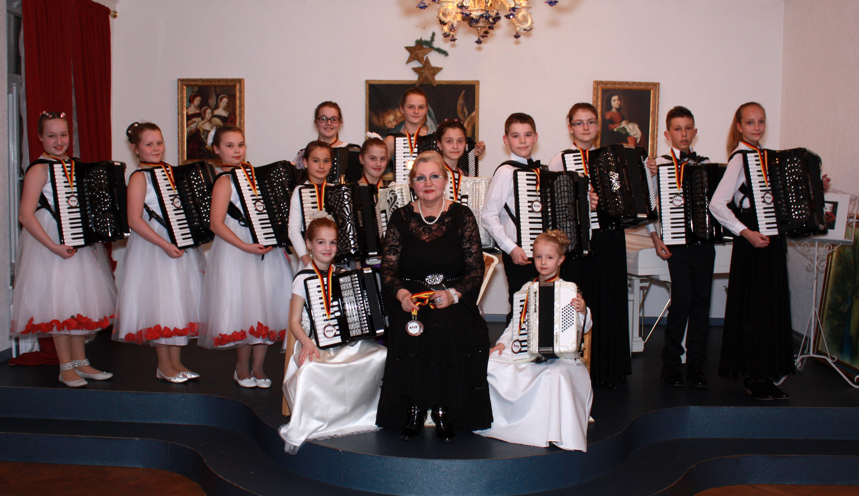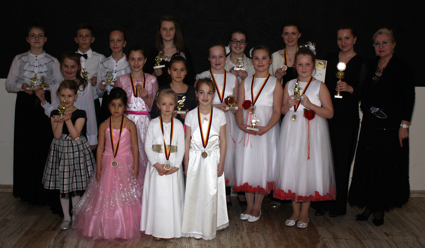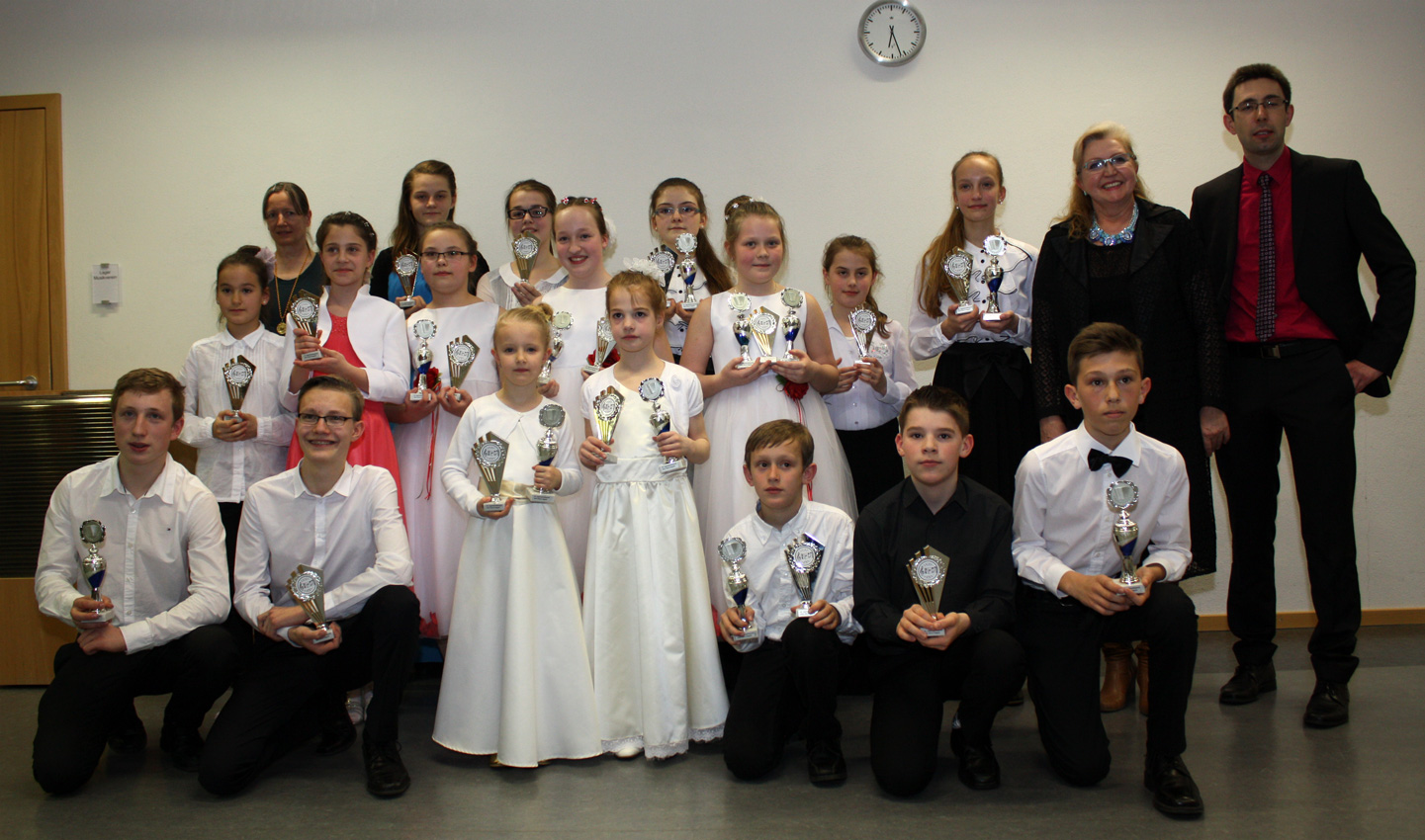 Bereits fünf Tage nach der Rückkehr aus Lettland fand am Sonntag, 22. März 2015 der 34. Jugendwettbewerb Akkordeon Solo / Duo / Ensemble des Bezirk Würm-Nagold in Holzgerlingen statt. Auch bei diesem Wettbewerb zeigte die Musik- & Kunstschule Glock wieder starke Präsenz: 16 Soloprogramme, drei Duos und zwei Trios. Am Ende erreichten 20 der 21 Programme das höchste Prädikat „hervorragend“ und die 16 Teilnehmer der Musik- & Kunstschule Glock gingen mit 27 Pokalen nach Hause.