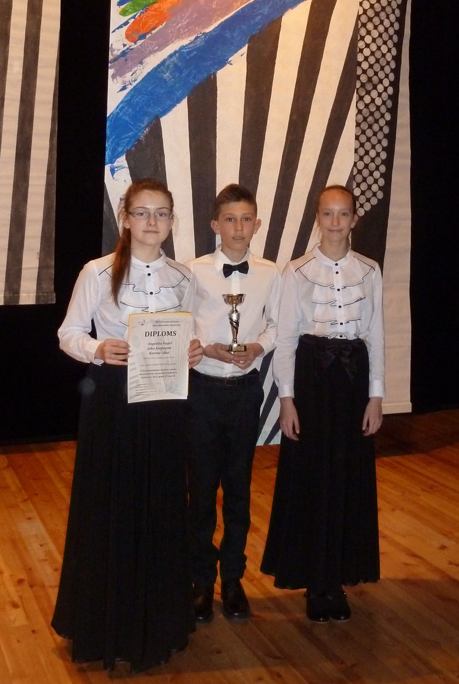 Vom 12.-17. März 2015 hat in Lettlands Hauptstadt Riga das internationale Akkordeon-Musikfestival mit Wettbewerb stattgefunden. Margarete Glock, Leiterin der Musik- & Kunstschule Glock reiste mit dem Trio „Sternchen“ ihrer Schüler John Jaufmann, Angelika Vogel und Karina Likai nach Riga. Nachdem sie früh morgens nach einem Nachtflug in Riga angekommen sind, durfte das Trio nach einem sehr langen Tag im Eröffnungskonzert des Festivals mitwirken. Neben vielen Konzerten und interessanten Begegnungen erspielte sich das Trio beim Wettbewerb den Grand Prix, den Hauptgewinn, der nur einmal pro Wettbewerb von der internationalen Jury (Lettland, Estland, Polen, Russland, Deutschland und Italien) verliehen wird.